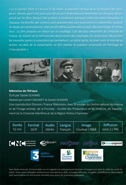 Pour savoir si l'un de vos aïeuls était à bord vous pouvez consulter les listes des passagers et des membres de l'équipage. Si vous êtes l'un des descendants de cette tragédie, si vous possédez des informations sur cette histoire, sur le paquebot Afrique ou les Chargeurs-Réunis,